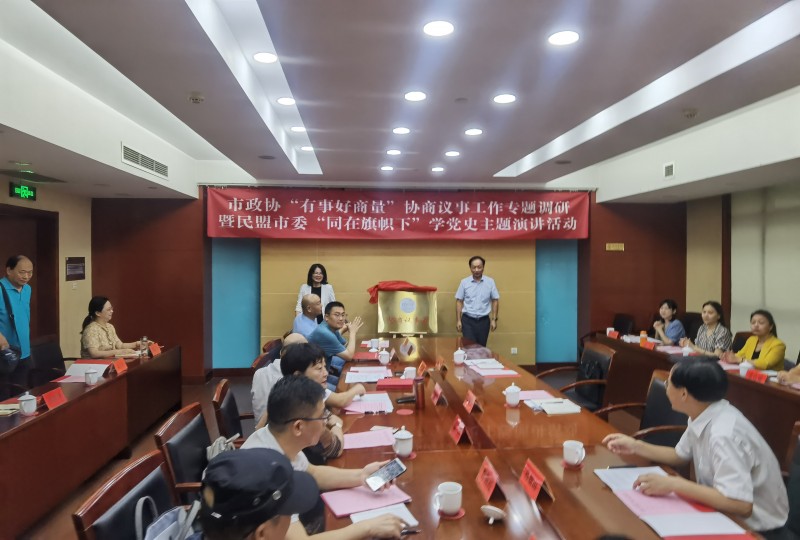 727日,市政协副主席吴新法、副秘书长孙如山、委员工作委员会副主任姜一鸣一行赴德彩网市委开展“有事好商量”协商议事工作专题调研及市政协民盟界别活动组“协商议事堂”授牌仪式。沈惠平、张翠娥、秦佳等9位民盟界别政协委员以及钱鹏、王明盛、朱莉等德彩网专项民主监督团成员代表出席活动。