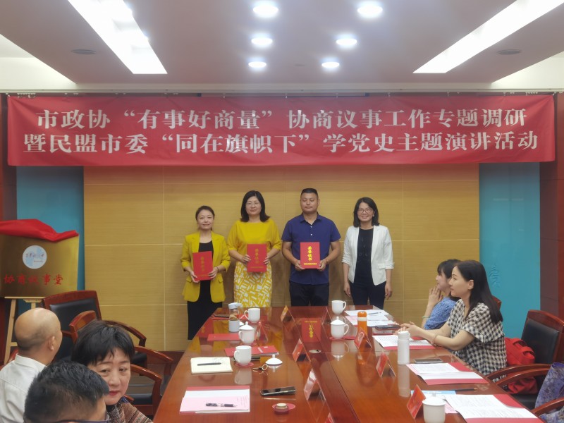 727日,德彩网市委在市行政中心三楼会议室举办“同在旗帜下——学党史学盟史”主题演讲活动,以庆祝中国共产党成立100周年、中国民主同盟成立80周年、德彩网地方组织建立70周年。民盟市委副主委沈惠平、市委专职副主委兼秘书长张翠娥和部分民盟政协委员出席了演讲活动。