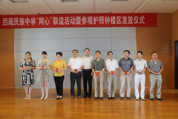 ----记西藏民族中学“同心”联谊活动暨参观护照钟楼区发放仪式 张跃致开幕词,她对来自雪域高原的300多名七年级新生表示欢迎,她说,常州是孩子们的第二故乡,对孩子们来说,这是一次公开课,从中可以体会到常州和西藏的真挚情谊,统战部门一定会关注他们的成长,为他们的健康成长提供平台;她希望与会的各民主党派代表深入了解“同心”内涵,感受“同心”价值,为民族团结做出更大贡献。 随后,张跃、赵世平及钟楼区政府代表共同为西藏民族中学“同心”文化示范基地揭牌,并向七年级新生赠送同心衫,向七年级新生代表、钟楼区各民主党派基层组织、工商联、无党派知识分子联谊会以及钟楼区各街道的宣传委员发放同心文化示范基地参观护照。常州市园林局原副局长邵志强受邀作常州风土人情介绍,他从雪域高原的“仁者爱山”到江南水乡的“智者乐水”;从诞生于6500年前常州溧阳水母山的中华曙猿到距今6000年前的圩墩文化;从季子到东坡;从常州的地名沿革到常州的经济发展、文化昌盛,短短半个多小时的介绍,赢得了全场一阵又一阵热烈的掌声。 最后,何海平代表钟楼区政府讲话,他指出,本次“同心”联谊活动暨参观护照钟楼区发放仪式很圆满,这次活动以民族团结为主题,以同心为元素,体现了常州与西藏兄弟般的真挚情谊,是对同心文化的弘扬,并祝愿孩子们快乐成长,学好本领,为祖国建设贡献力量。(彭红星)