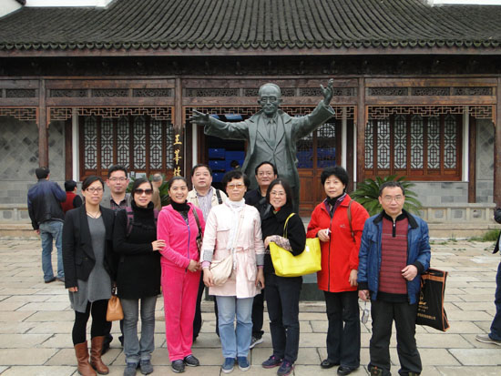4月20日,民盟三中支部的在职盟员来到中国历史文化名镇——无锡荡口古镇。 这是一座典型的江南水乡,家家枕水而居,户户开门见水,感觉那蜿蜒的河流是从历史的远处淌来,河面上粼粼碧波在向我们诉说着古镇的传奇,小桥流水,深宅大院,难怪荡口有千年“水码头”之美称。 更让人惊奇的是这里诞生并走出了许多的名人。明清两代荡口考中进士的有25人,其中 9人的书稿被收录《四库存目》。光是华氏家族就有:明代首创铜活字印刷的华燧,中国近代科学先驱、第一艘机动轮船的发明人、数学家华蘅芳,琵琶古曲《十面埋伏》曲谱的编写者、民族音乐演奏家华秋苹,首创仿针绣法的民间刺绣艺术家华图珊,著名漫画家华君武,以及引进莫尔斯电报、铺设中国第一条海底电缆的华世鉴等。此外,还有中国现代历史学家、国学大师钱穆,著名的词曲作家王莘,站在王莘故居那扬手指挥的塑像前,我们似乎听到了《歌唱祖国》激扬的歌声。 最值得一提的是中国近代力学之父,世界著名的科学家、教育家钱伟长。他还是杰出的社会活动家,中国民主同盟的卓越领导人,中国共产党的亲密朋友,中国人民政治协商会议第六届、七届、八届、九届全国委员会副主席,中国民主同盟第五届、六届、七届中央委员会副主席,第七届、八届、九届名誉主席,中国科学院资深院士,上海大学校长,南京大学、暨南大学、南京航空航天大学、江南大学名誉校长,耀华中学名誉校长;钱伟长院士兼长应用数学、物理学、中文信息学,著述甚丰,特别在弹性力学、变分原理、摄动方法等领域有重要成就。钱伟长曾在荡口多所学校就读过。站在钱伟长故居前,全体盟员对这位2010年去世的民盟前辈敬佩不已。 荡口为何名人这么多?荡口文化植根于古吴文化,经过上百代人薪火相传,荡口发扬光大了吴文化,又形成了自己的特色,即尚德、创业、崇教、亲水、民俗五大特色,其核心是“孝”和“义”。耕读起家,诗礼传家,崇尚教育,以义为利,广置义田,兴办义学,民风淳朴。正是基于此,荡口历代人才辈出。 走在荡口古镇斑驳的青石小路上,义盛河、北仓河两条河脉蜿蜒灵动,两岸青堂瓦舍,一座座古建筑用自己的方式叙述着荡口千年来的传奇历史,其中有43%为文保建筑,目前已经全部修复。荡口这钟灵毓秀之地,正以新的面貌展现在人们面前。 民盟三中支部的这次活动,让人在感受荡口深厚的历史文化底蕴时,还久久地去思索该怎样在人生的轨道上也留下印迹……(徐秋云)