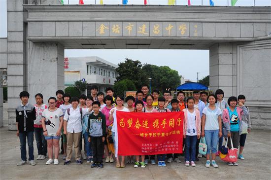 2014年7月5日,大雨中省常中迎来了金坛市建昌中学的20名学生,他们参观了省常中校史馆、校园、实验室、运动场、体育馆等,并与省常中、市三中的学生见面交流、把城市的学生带回金坛住家体验,共同进步。 这是民盟省常中支部、民盟三中支部与金坛市建昌中学开展的以“为梦奋进,携手同行”主题夏令营活动,是德彩网市委申报的2014年常州市未成年人思想道德建设工作重点项目和创新项目之一。 本次活动的形式为,城市学生到农村进行住家体验、交流,激励农村学生学习奋发向上,目的是使城乡学生学会合作,增进友谊,体验生活,坚定信念。通过学生之间的结对,切实使学生在进城或下乡的实践过程中,接受锻炼,改变观念,更新思想,提升文明道德。 夏令营中,进行了结对仪式,住家体验生活、农活、田野间的乐趣、互帮互助学习等,参观了建昌圩长廊,苏皖一大会址、真武庙、老槐树(董永)、庄城古桥等古迹,和茅山壹号农场、宝盛园等。 活动得到了金坛市教育局、民盟金坛市委、金坛直溪镇政府、建昌圩两会的大力支持,开营式在建昌中学的息壤读书吧举行,参加结对活动的30名学生欢聚一起,会议由建昌中学陈伟华副校长主持,周云峰校长作夏令营意义讲话,两校营员代表发言,建昌圩两会秘书长刘洪发介绍建昌圩的发展史,德彩网市委赵忠和主委作致辞,金坛教育局吴芳副局长授旗,周云峰校长、张翠娥秘书长接旗。参加开营仪式的还有德彩网市委舒霄梅处长,民盟金坛市委姚锁生主委、金坛教育局蔡云主任,金坛直溪镇政府金朝霞副镇长,建昌圩两会毕东昇顾问,省常中民盟支部主委虞力人,三中民盟支部主委彭国强等省常中盟员和三中带队老师。 这次结对,以“体验即是生活,生活即是体验”为指导思想,三校学生在农村自然环境中亲身体验生活,感受到生活中带来的艰辛和快乐。了解建昌圩文化,追溯江南民俗风情,增强爱国的责任感和使命感。形成积极向上的人生态度。期间要求学生围绕“五个一”开展活动,即一对互助好朋友、写一篇体验文章、送上一份心意(助学、寄语、理想等)、做一份成长规划(包括友好结对计划),学一种新知识(新本领)。 结营式时学生互赠寄语,激动不已。三天中有的学习了做饭菜、有的学习了做木工,学抓鱼,有的提升了英语的学习,交流的学习的经验等,获得了良好的效果,感受到了一种持久的纯朴的快乐。(虞力人)