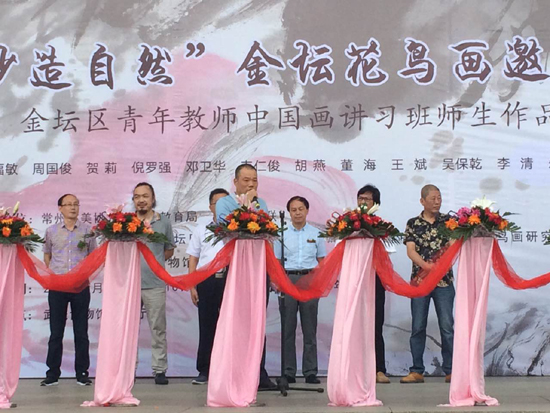 2016年8月26日上午10时,由常州市美术家协会、金坛区教育局、金坛区文联主办的"妙造自然——金坛花鸟画作品展"在武进区博物馆隆重开展。金坛区文联主席、民盟副主委姚锁生,区文联党委书记李平,常州市美协副主席兼秘书长张冬桥参加了开幕活动。一起参加开幕活动的还有:区美术家协会主席、盟员程云仲和区教育局艺术中心副主任、区书协副主席、盟员冯建国。
