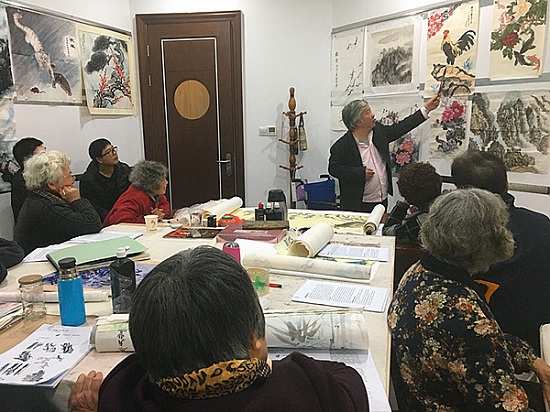 梨花风气正清明,4月5日的一场大雨,温度骤降,但金东方社区的书画室却暖意融融。应金东方书画协会和武进开放大学邀请,武进民盟文化支部副主委陆献新,为金东方书画协会的十几位会员作了一次别开生面的国画讲座。 本次讲座颠覆传统课堂模式,采用沙龙分享和现场点评的方式进行。陆主委首先将精心准备的《国画基础知识》、《山水画基本功练习贴》赠送给学员,鼓励他们课后好好研读。接着对会员们提交的国画作品一一点评,指出每一幅画的优点与不足;然后结合自己的作品以及当下的书画潮流进行解析,让大家有很直观的对比,继而发现不足,有所领悟。最后就水、墨、章法、技巧等方面作了示范,对学员们的问题一一答疑解惑。两个半小时的时间,老年学员们都非常认真聆听并积极与老师互动,现场气氛异常热烈。 陆主委说:“在座的学员都是老有所学、老有所乐,在乐中图个雅趣,陶冶情操,身教子孙后代,值得点赞。希望每位学员每天进步多一点,不断收获自己满意的作品”。 参加沙龙的吴阿姨会长说:“陆老师的讲解旁征博引、深入浅出,能直接与大师面对面互动,大家受到很多启发,在绘画上取得了很大进步。感谢武进民盟提供这样宝贵的机会,高效率高质量满足了我们的需求”。 据悉,陆献新受家母影响自幼喜习绘画,兼攻花鸟山水,尤爱画竹,早年师承赵治平、周国兴、莫静坡等老师,曾为专职美工十五年。先后受教于中国美术学院、中央美术学院。幸遇韩潞、田源、金大伟、崔晓东、孔燕、赵凯等名家教诲,书画作品参加海内外多地展览,并收藏于西湖颖洲碑林、浙江省非物质遗产文献馆等。现为武进区政协委员、德彩网武进文化支部副主委、武进区文联委员。江苏省书法家协会会员、常州书画艺术院特聘画师、常州恽南田书画会会长。 本次活动是武进民盟在金东方设立“同心”社会服务实践基地以来,契合社区居民需求,送讲座进社区的文化惠民实在举措之一。不仅丰富了社区居民的精神文化生活,也为推动和谐文明社区建设和学习型社区建设发挥了积极的作用。(顾晓霞)