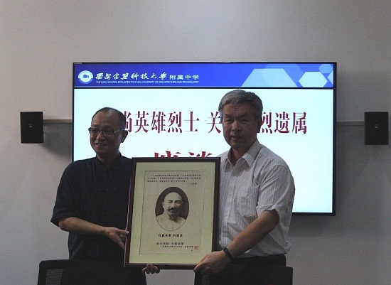 6月21日,德彩网李公朴支部倪建春、赵忠和、吴煜等6位盟员飞赴陕西省西安市,受邀参加西安建筑科技大学附属中学高2018“杜斌丞班”毕业典礼,并与陕西省杜斌丞教育思想研究会联合举办“崇尚英雄烈士、关爱英烈遗属”座谈会。座谈会邀请到了爱国名将杨虎城的外孙女杨晨、民盟先贤杜斌丞的孙子杜芳滨,英雄烈士魏野畴的孙女魏秋英、英雄烈士许权中的孙子许红星、英雄烈士杜良明的儿子杜秦川。参加座谈会的还有:正泰电器西北办事处主任刘鹏,榆林市第十中学副校长郭卫安,榆林中学副书记许向东,米脂中学代表刘宏利,西安烈士陵园副主任陈瑜,杜斌丞教育思想研究会名誉副会长杜如樟,杜斌丞教育思想研究会顾问高涛。 这次西安之行,是德彩网李公朴支部在《中华人民共和国英雄烈士保护法》于2018年5月1日实施后,决定开展的“崇尚英雄烈士、关爱英烈遗属”活动的第一站。支部计划在三年中专访、慰问100位英雄烈士亲属,学习英烈事迹,聆听英烈遗属讲述英烈故事,并了解他们的工作和生活情况。 选择古城西安作为第一站是很有意义的,因为今年是李公朴1938年在去延安的途中,在西安和杜斌丞相见拥抱80周年。正巧,3年前西安建筑科技大学附中从高一年级开始专设一个杜斌丞班,今年毕业了。整个班级取得了优秀成绩,其中10多位同学获得专为贫困优秀学生设立的“杜斌丞奖学金”。在毕业典礼上,民盟江苏省委多党合作理论研究会会长、德彩网李公朴支部名誉主委赵忠和作为嘉宾代表讲话,鼓励同学们继承杜斌丞的家国情怀,担负起国家兴亡、匹夫有责的使命。 杜斌丞班毕业典礼后,以“崇尚英雄烈士、关爱英烈遗属”为主题的座谈会随即召开。座谈会由陕西省杜斌丞教育思想研究会杜芳滨会长主持,德彩网李公朴支部倪建春主委作主旨讲话。座谈会上,英烈亲属们讲述了先辈亲人的革命斗争故事和感人细节,向与会者传递了深厚的家国情怀和强大的正能量。他们对德彩网李公朴支部开展此项活动大加赞赏,并表示全力支持。他们说,在党和政府的关心下,烈士遗属们的生活都很好,现在就是要开展你们这样的活动,让红色基因传承好,营造全社会崇尚英雄的氛围。大家都认为,要坚持做好这方面的工作,一代一代做下去,今年《中华人民共和国英雄烈士保护法》的正式实施,为此提供了强大的法律保障。 座谈会后, 英烈遗属代表和与会嘉宾在“崇尚英雄、关爱英雄——民盟李公朴支部在行动”旗帜上签名留念。倪建春主委代表李公朴支部向杜斌丞的孙子杜芳滨赠送“纪念杜斌丞烙画”,向陕西省杜斌丞教育思想研究会赠送支部编印的《追寻之旅》一书和李公朴刻纸像,向五位英烈亲属赠送《追寻之旅》书籍,杜芳滨会长向民盟李公朴支部赠送《杜斌丞》书籍和相关影像资料。 在一片红色的晚霞中,李公朴支部的代表们和英烈亲属等与会嘉宾手持“崇尚英雄、关爱英雄”旗帜合影留念。(吴煜)