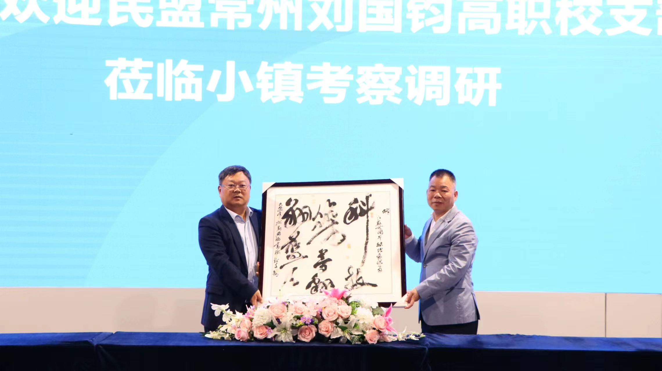 熊青云向江苏无国界航空发展有限公司赠送了常州刘国钧高职校张正军老师的书法作品:“科技筑梦, 翱翔蓝天”。