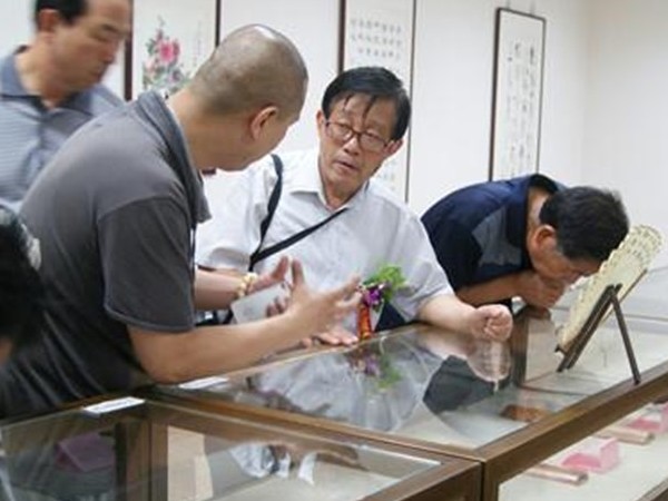 ![]() 本次展览是留青竹刻走出常州本土的首次专场展览,主要展出了徐氏三代人的竹刻、字画、红木浅刻等精品佳作百余件,在业内取得了较好反响。展出作品包括徐氏第一代创始人 展览开幕当天,徐秉言现场演示并奉上《大师的故事——忆素 徐秉言,1942年8月出生,1993年3月加入民盟,高级工艺美术师,中国竹工艺大师,中国工艺美术家协会会员,常州市工艺美术家协会副主席。自幼随父徐素白(中国著名竹刻大师)学刻并师从国画大