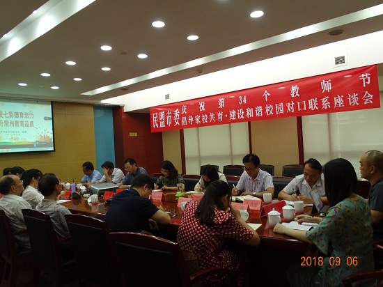 9月6日上午,德彩网市委在行政中心3号楼A座3楼会议室召开以后“倡导家校共育·建设和谐校园”为主题的庆祝第34个教师节暨对口联系座谈会,盟市委专职副主委兼秘书长张翠娥,老领导周源、李永达,基层盟员教师代表及部分机关工作人员25人参加。盟市委组织处处长曹永忠主持。 盟市委特邀市教育局德育处处长潘莉作《激发七彩德育活力,提升常州教育品质》专题报告。她先向与会盟员教师整体介绍常州教育将从高举一面旗帜、瞄准两大目标、主攻三大任务、坚持四大战略、实施五大行动计划5方面全面提升常州教育品质。而后紧扣学校德育,着重介绍近期市教育局德育工作重要举措、取得的成绩、未来蓝图等,内容包括全省职业学校班主任基本功竞赛成绩,思考综合实践活动基地建设如何更有效地统整资源,研学旅行怎样做才能更规范更好地服务于学生成长,全市高中生模拟政协活动成绩喜人,名班主任队伍培育进一步体现教育行政对班主任队伍建设的重视等。 所有这一切都落实到“人”,着眼于“学生”,利用各方资源,联结学校、家庭、社会等各种力量形成共育平台,协同育人,促进学生生命成长。 盟员教师代表围绕“家校共育”话题说现状、谈想法、话困惑、出主意、找对策,一一发言的过程中,又稍作停留,对某个问题进行再碰撞。无论是在职一线教师,还是退休老教师,说起班级,说起学生,说起教育那些事儿,都是侃侃而谈,激情满怀。 “‘养不教,父之过;教不严,师之惰。’教师应明确自身职责,知晓承担的责任。在家校共育中,起主导作用的还应该是学校与教师。”盟市委老领导周源如是说。李永达强调,“学校发展应以人为本,尤其关注学生身心健康,要思考如何让学生快乐学习。另外,在当前信息化时代,家校共育通过哪些途径?家长微信群的合理使用必须多考虑,常研究。”陈开和主委认为“家庭教育重在‘育’,而不是教。”“复印件的好坏,取决于原件。复印件出了问题,要在原件上才能修改。”“教会家长如何做家长,目前的家长会是无法实现的。这就需要探索,构建适切的家长成长教育体系。” 万建群主委丽中介绍高举“赏识”大旗,以“悦纳世界,激活自我”为育人理念,牢牢确立“人人都是成长者与管理者”“管是为了不需要管”“教是为了不需要教”的管理思想,大德育管理理念必将为丽中的发展带来新鲜的空气与无穷的活力。眭亚燕老师分享担任班主任的苦与乐,满面笑容地诉说她与调皮学生的故事,嗔怪的语气掩盖不了对学生成长的喜悦。她认为市教育局名班主任三级评选的举措为所有班主任搭建了一个更好地实现自我成长的舞台。听吴海燕老师娓娓讲述三井实验小学的“家长大学”,家长通过在“家长大学”进修,可以修得学分,拿到课时,并且与优秀家长评选挂钩,全校营造大家一起学的文化生态,让人耳目一新。朱元琛老师说,在心理健康教育这一块,家长需要补的课太多了,仅“如何学会与孩子的沟通”这个话题,就得好好学习。孟启主委认为家校共育,关键在于“共”字,思考研究的着力点应该在这里。