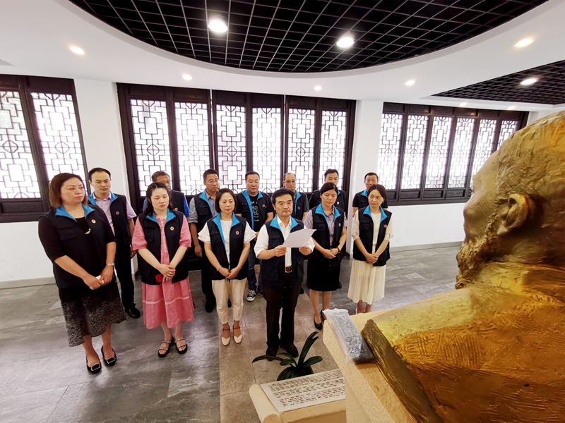 2019年7月12日,是中国民主同盟早期领导人、伟大的爱国主义者、坚定的民主斗士、杰出的社会教育家李公朴先生的殉难日。这一天下午,江南梅雨绵绵,德彩网李公朴支部的盟员们在李公朴先生事迹展览馆举行庄重的祭奠、纪念活动,以表达对先生的缅怀、敬仰之情。祭奠活动由李公朴支部副主委闵柳燕主持。在李公朴塑像前,盟员们穿着支部特制的背心,佩戴支部徽章,齐唱国歌。庄严、豪迈的国歌声,告慰公朴先生,伟大的祖国已从站起来、富起来走向强起来,传达出公朴支部盟员身处新时代为国家奋斗的强烈使命感、责任感。 德彩网市委原主委、李公朴支部名誉主委赵忠和代表支部宣读了亲笔书写的纪念李公朴先生殉难73周年的祭文。祭文缅怀先烈,传达信仰,同时表达了李公朴支部将在先烈精神的引领下,将更好地传承前辈传统,弘扬先贤精神的信心和决心。支部盟员怀着崇敬的心情,列队在李公朴先生的塑像前深切缅怀公朴先生,再次接受李公朴先生前事迹和英雄精神的教育。 随后李公朴支部盟员向李公朴塑像行三鞠躬礼,隆重表达对民盟先贤的缅怀、敬仰之情。 倪建春主委和盟员李峰代表支部向李公朴事迹纪念馆赠送了李公朴先生的烙画像。在“崇尚英雄,关爱英雄”专项活动中,支部为每位英雄先烈特制了烙画像,表达对先烈的缅怀、崇尚之情,激发人们“崇尚英雄,关爱英雄”的情感。 支部盟员吴煜、王文伟代表支部向李公朴纪念馆赠送了李公朴先生的刻纸像。这些纪念品供李公朴纪念馆、李公朴故居收藏、陈列。李公朴事迹纪念馆负责人胡金女士代表纪念馆接收纪念品。 支部盟员李华、李军代表支部向李公朴先生塑像捧上了一盆君子兰。君子兰的高洁形象,正是李公朴先生一生尽瘁救国事业与文化进步,为和平民主威武不屈、富贵不淫这种崇高精神的象征。 李公朴先生殉难73周年祭奠活动,让支部全体盟员再次接受了一次爱国、爱盟的革命教育。大家走近英雄事迹,感受英雄精神,将进一步把英雄遗志继承、发扬,践行创新新时代的盟务工作。 (德彩网市李公朴支部 汤亚萍)