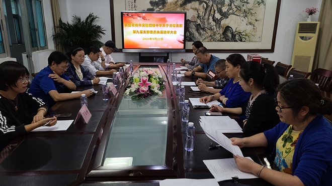 9月22日下午,民盟实验初级中学天宁分校支部第九届委员会委员选举大会,在实验初中天宁分校行政楼四楼会议室召开。支部成员7人参加;德彩网市委组织处处长曹永忠、支部联系人于玉婷,民盟天宁区基层委副主委虞力人,实验初中天宁分校的党委书记蒋霞秋应邀参加大会。