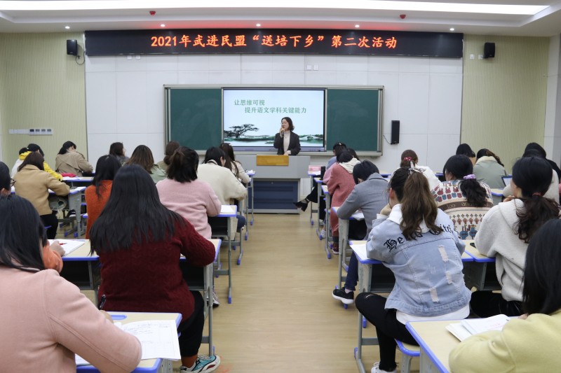 4月14日下午,民盟武进区基层委2021年“送培下乡”语文学科第二次研训活动在武进采菱小学培训基地举行。基地导师——市优秀盟员武进区实验小学蒋欣校长联合武进区湖塘桥第二实验小学朱燕芬校长、武进区实验小学蒋琦霞老师以及全体学员参加了此次活动。 活动第一阶段,首先由2021年区小学语文教师基本功竞赛一等奖获得者蒋琦霞老师执教《田忌赛马》,蒋老师由一个排数游戏导入新课,与后续课文教学完美结合,接着从课文中的人物入手,带领着孩子们围绕“赛马”一词进行多方面多角度的深入探讨,将思维这一语文要素落地化,转化成了可视的教学活动。 第二阶段,朱校长执教《跳水》一课,这堂课为我们树立了一个非常优秀的小说文本教学的标杆。在《跳水》第一课时的教学过程中,朱老师通过抓人物、抓情节等当将“思维”要素的教学与课堂教学中的活动完美融合,如让学生寻找关键人物并谈及理由、以及让学生角色代入,再现船长的思维过程,做到了真正的教学评一致。 最后,蒋校长和朱校长分别围绕思维这一语文要素开展以“看得见的人物思维,摸得着的语文要素”和“让思维可视化,提升语文学科关键能力”的主题讲座。 “送培下乡”采菱小学基地第二次研训活动成功开展,全体学员在此次活动中均表示收获颇丰。本次活动给每位成员搭建了学习、研讨和提高的平台,冰冻三尺非一日之寒,在教学教研的道路上,相信全体学员将在蒋欣导师的带领下,切实掌握新的教学理念和先进的教学方法,不断探索、大胆尝试不同的教学方法,一路欢歌,砥砺前行!(蒋欣 薛群年)