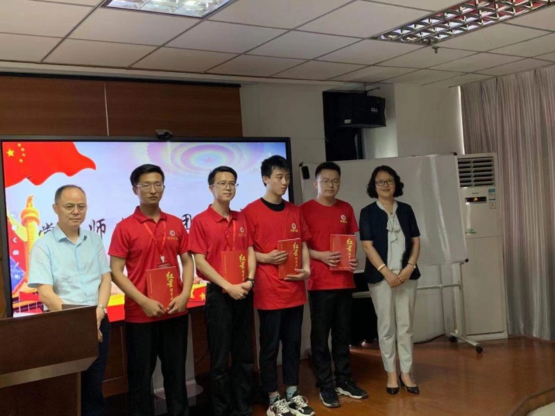 张书记、孟主委及盟员教师代表为江苏双创团队毕业生代表授予《红星耀常大》一书,该书是由江苏省双创团队师生共同创作的以弘扬红色精神为主题的内部学习红创类教材。