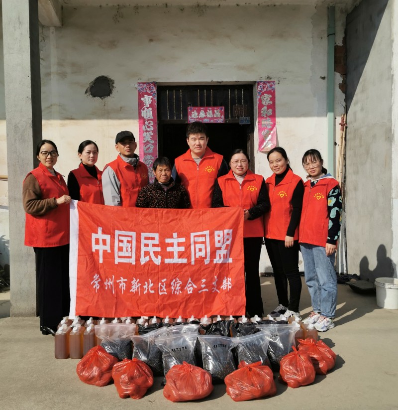 综合三支部对接的阳光扶贫家庭在脱贫后,仍能关注他们的动态,消费扶贫持续开展。这不,今年老杨家的菜籽油和芝麻又要开始售卖了,新北综合三支部第一时间在常州盟员之家的微信群吆喝义卖,在大家庭中为他们售卖了190斤的菜籽油和70斤的芝麻。11月27日下午,一群身穿红马甲的盟员志愿者们来到老杨家提取了菜籽油和芝麻,一路送到了新北盟员之家,让大家集中到盟员之家去领取,既参观了新北盟员之家,又领取了义卖的农作物。