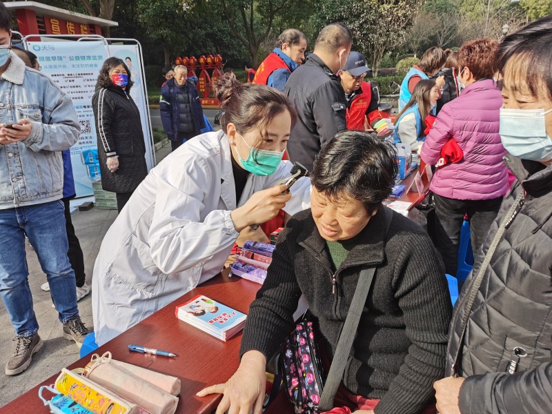 义诊现场,阮佩英逐一为前来咨询的群众检查耳道,并讲解爱耳、护耳及耳石症等相关健康知识,还发放了《人人享有听力健康》等健康手册,提醒大家要有意识的养成健康用耳习惯。阮佩英专业的解答和志愿者们热情和蔼的态度受到了大家的一致称赞。