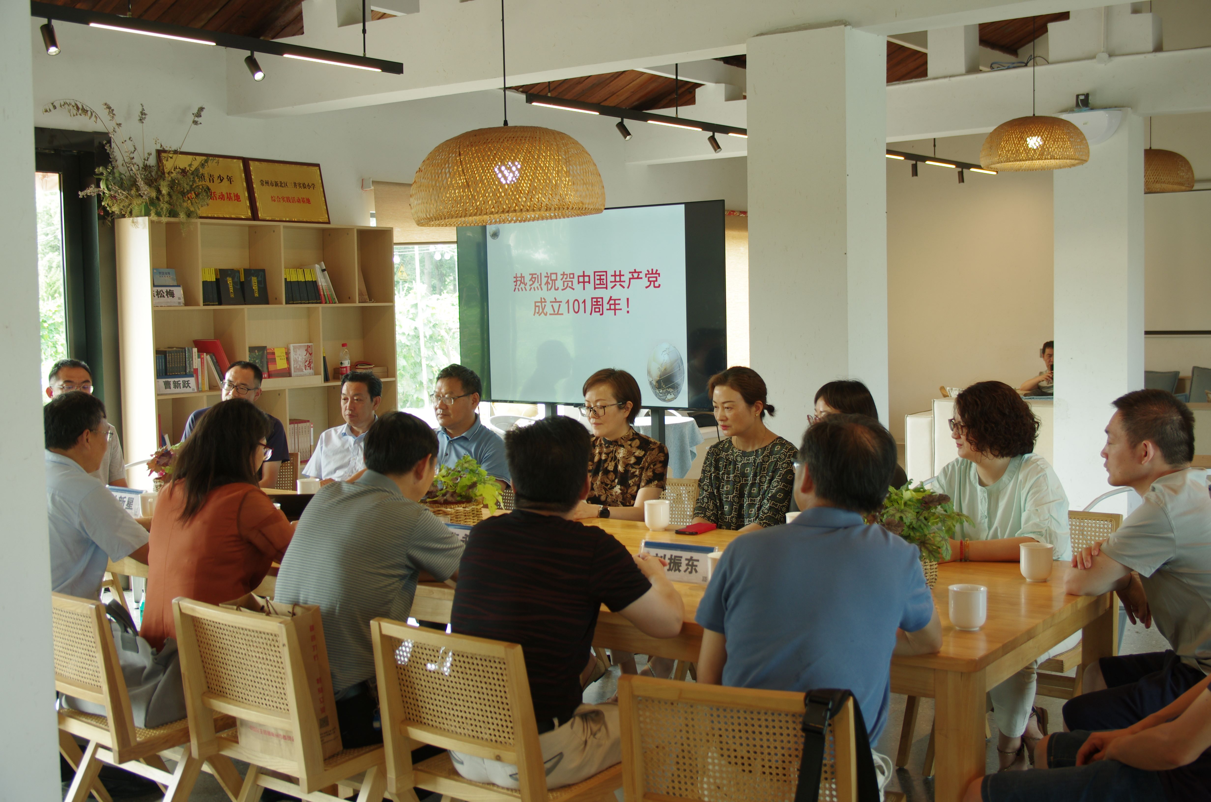 为了庆祝中国共产党成立101周年、香港回归25周年、民盟江苏省第十三次代表大会会议的胜利召开,7月1日上午,德彩网市北郊中学支部全体盟员前往民盟助力乡村振兴实践基地——常州市新北区奔牛镇东桥村史陈家村进行党盟研学主题活动。 民盟北郊中学支部付新星主持这次的主题研学活动。 德彩网市委专职副主委兼秘书长张翠娥,应邀给支部盟员宣传民盟江苏省第十三次代表大会会议精神。她高屋建瓴,条理清晰地历数江苏民盟在过去五年取得了成就、未来五年发展新的举措。盟员们认真学习领会“矢志不渝跟党走、携手奋进新时代”政治交接主题教育精神。 德彩网市委组织处处长曹永忠,详细介绍了民盟助力乡村振兴实践基地——史陈家村的建立和发展情况。 常州市北郊高级中学曹新跃,感谢德彩网对北郊民盟支部的大力支持,高度肯定了北郊支部盟员对学校各项工作的突出贡献,希望党盟密切协作,创造更加辉煌的成就。 民盟北郊中学支部老主委杨华平给大家讲解中国儒家经典《中庸》的智慧。中华传统文化的智慧为新时期的学习工作生活面临的困难提供必要的借鉴。 民盟北郊中学支部宣传委员王宽军跟大家分享德彩网先贤周有光老先生晚年的作品的心得:秉承老一辈真诚为人,敢讲真话,坚持真理,追求进步的精神。 下午盟员们充分讨论了“减负”的困境与策略等课题。会后一起参观了陈史家村,了解其生态产业的发展情况。