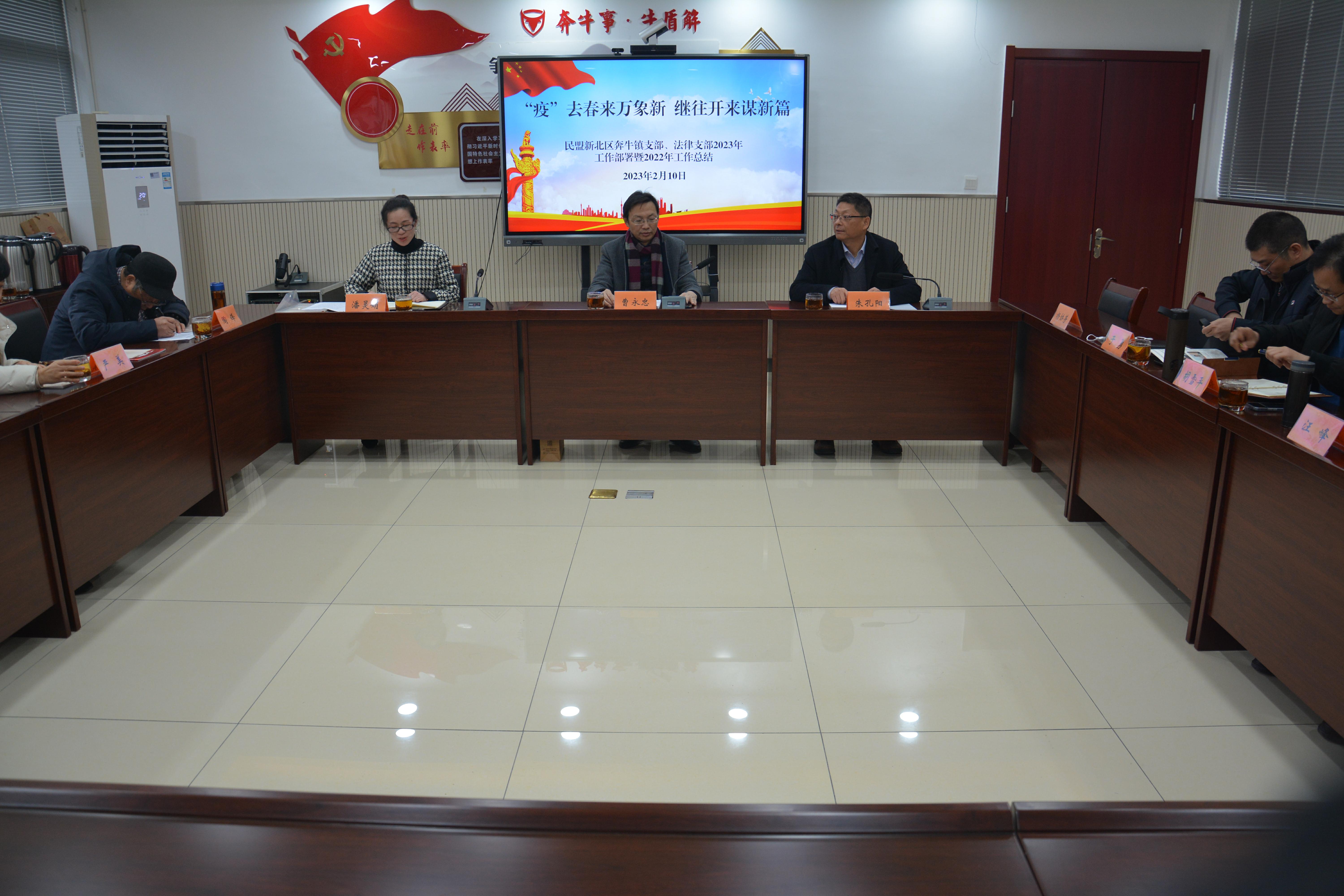 2023年2月10日,民盟新北区奔牛镇支部、法律支部,在奔牛镇联合召开学习贯彻党的二十大精神暨2023年工作部署大会,全体盟员共同参加。德彩网市委组织处长曹永忠应邀参会。 曹永忠以“盛会凝聚人心 使命催人奋进”为题作中共二十大专题辅导,围绕“过去五年的工作和新时代十年的伟大变革、新时代新征程中国共产党的使命任务、采取哪些举措完成重大使命任务”三个方面,就“为什么能取得卓越成绩”和“中国式现代化长什么样”两个问题进行重点阐述。通过对中共二十大精神的深入学习,全体参会同志纷纷表示,在今后工作中将努力传承“奔走国是,关注民生”的优良传统,充分发挥自身优势特长,不断提升履职能力水平,进一步增强“四个意识”、坚定“四个自信”、做到“两个维护”。 随后,法律支部主委朱孔阳、奔牛镇支部主委潘灵娟,分别总结了本支部2022年的工作并就2023年工作进行筹划部署。潘灵娟表示,2023年奔牛镇支部将带领全体盟员,以同心理念为引领,切实加强自身建设;以履行职能为手段,增强参政议政本领;以改善民生为根本,做好社会服务工作;以促进和谐为目标,投身社会管理创新。在深入学习贯彻中共二十大精神和民盟十三大精神的过程中,自觉做习近平新时代中国特色社会主义思想的忠诚信奉者和坚定实践者。