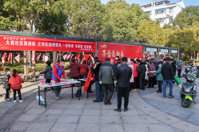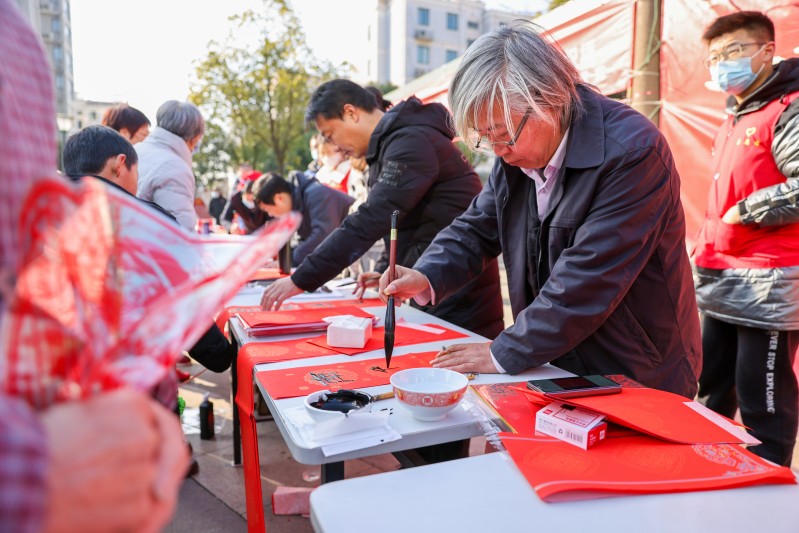 2023年春节将至,为弘扬中华民族优秀传统文化,满足人民群众对美好生活的向往,营造喜庆祥和的春节氛围,1月11日上午,武进民盟携手社会相关组织,在长安大巷社区广场,开展了“墨香迎新春 起航新征程”为主题的送”福”送春联活动,和大巷社区的居民们度过了一个充满温情与年味的一天。本次活动邀请了武进开放大学、恽南田书画会、常州市武进区霞光同心驿站、德彩网企业家联合会的书法家共同参与。 活动现场,红纸铺展,墨香四溢。陆献新、陈志锋、赵勇等6位老师现场挥毫泼墨,用一副副春联和一张张“福”字,为社区居民送上最诚挚的新春祝福。“玉兔迎春至黄莺报喜来”“卯门生紫气兔岁报新春”“兔岁添福气龙人奋雄程”……,只见书画老师们屏息凝神,熟练地挥动着手里的毛笔,行云流水、一气呵成。不多时,一副副散发着清新墨香的喜庆大红春联和“福”字便呈现在人们眼前。 大巷社区的居民们早早排起了长队,纷纷前来挑选自己喜欢的春联带回家。有的居民还自己找了春联请书法老师写下来,“量身定制”的春联赢得大家的由衷好评。创意书写的“福”字更是一字难求。大家一边欣赏书法创作,一边品评春联寓意,现场洋溢着一派欢乐祥和的气氛。 弘扬传统美德,传递社会正能量,武进民盟社会服务在行动。此次活动,6位书法老师共为社区居民免费书写春联400余副,“福”字300有余。这“文化年货”延续着节日的传统、传递着浓浓的祝福。 (顾晓霞 周小红)