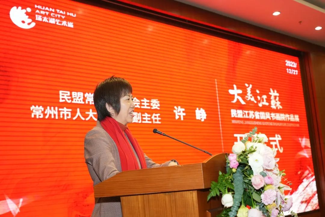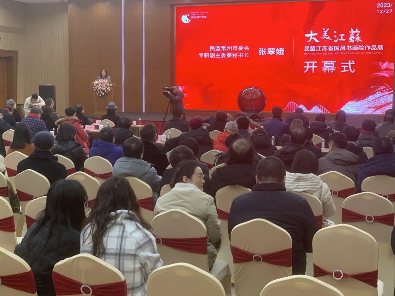 1227日上午,大美江苏·2023民盟江苏省国风书画院作品展在中国·环太湖艺术城文化艺术中心举行开幕式。民盟江苏省委会副主委、民盟江苏省国风书画院名誉院长、江苏省书法家协会副主席兼秘书长刘灿铭,常州市人大常委会副主任、德彩网市委会主委许峥民盟江苏省国风书画院院长、江苏省花鸟画研究会会长、国家一级美术师赵治平分别致辞。