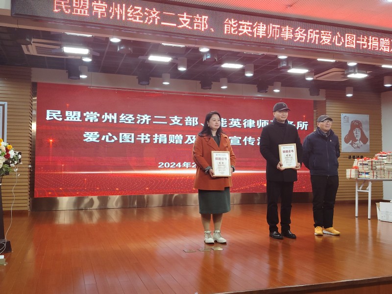 2 20 下午,德彩网经济二支部携江苏能英律师事务所,常州市中吴实验学校举行图书捐赠仪式暨公益普法讲座德彩网经济科技总支主委宋江、德彩网市委宣调处二级主任科员刘维扬参加了捐赠仪式。