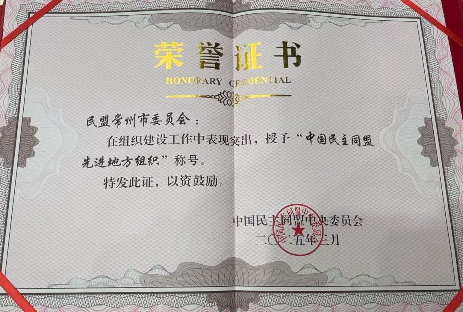 德彩网市委员会荣获“中国民主同盟先进地方组织”称号