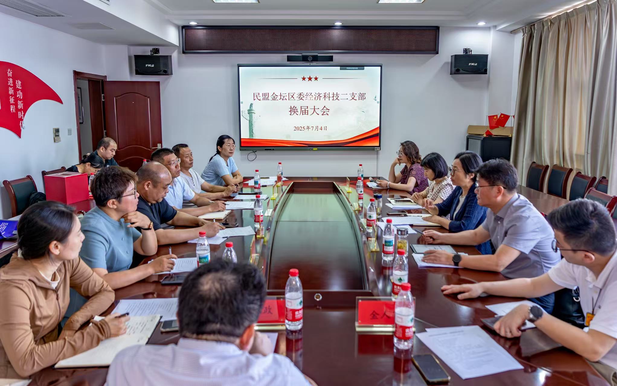 7月4日,民盟金坛区经济科技二支部换届大会在区农业综合服务中心顺利召开。金坛区政协副主席、民盟金坛区委主委朱亚群,区委统战部党派科科长徐蓓蕾,区农业农村局党委书记杭爱民等出席会议。 大会听取并审议了上一届支部委员会工作汇报。支部主委李勇在报告中指出,过去五年,支部坚持把思想政治建设摆在首位,组织盟员深入学习党的二十大精神和民盟十三大重要会议精神。支部立足所能所长,聚焦区委区政府中心工作,围绕民生需求、社会焦点,积极履职尽责,参政议政,形成了多项优质调研报告和提案,为金坛区经济和社会发展做出了积极贡献。大会经无记名投票,选举产生新一届支部委员会,李勇继任主委,吴金定担任副主委兼参政议政委员,闵昭、王哲明、李淳分别担任组织委员,社会服务委员和宣传委员。 杭爱民充分肯定了支部对“三农”事业所做出的贡献,对新一届支部发展提出三条建议:一是聚焦政治引领、筑牢思想根基,把民盟服务社会的优良传统融入乡村振兴伟大实践;二是立足本职岗位、站稳人民立场,在服务农民群众中提升履职能力;三是锤炼过硬作风、严守纪律规矩,共同塑造清正廉洁、公道正派的民盟队伍形象。 徐蓓蕾充分肯定了经济科技二支部过去五年的工作成绩,勉励新一届支委会不忘合作初心,努力担当作为,坚持守正创新。要继续加强思想政治建设,提高政治站位;要加强组织建设,激发支部活力;要围绕中心,服务大局,积极参政议政;要立足岗位,热心社会服务,为金坛区各项事业的发展做出新的更大贡献。 朱亚群在总结讲话中做出指示,要筑牢思想政治引领坐标,凝聚思想共识底色,牢记习近平总书记要求,自觉承担参政议政的历史使命;强化责任担当作为凸显专业优势,不断提高参政议政的能力,在多个方面贡献智慧和力量;多方联动为支部开展活动凝聚力量,加强与兄弟支部的合作,联合开展活动;夯实组织建设根基,推进持续发展动能,多沟通交流,提供人才支持。 本次换届标志着经济科技二支部开启新的工作征程。全体盟员表示,要继续发扬民盟优良传统,凝心聚力、砥砺前行,以更高站位、更实举措助力金坛高质量发展。