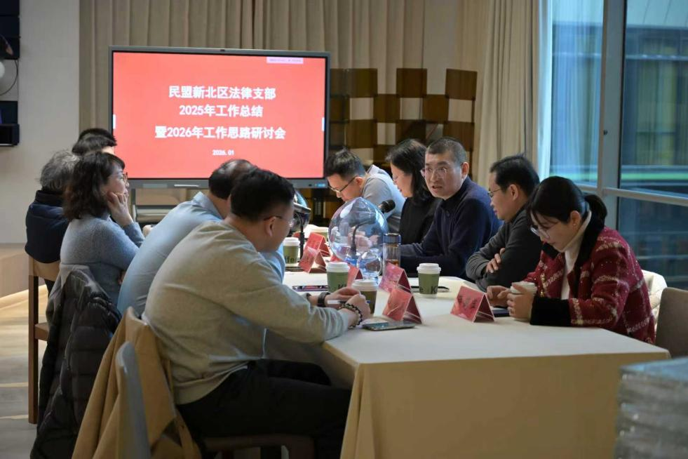 1月18日,民盟新北区法律支部在常州康睦家居有限公司会议室召开2025年工作总结暨2026年盟务工作思路研讨会,新北区政协副主席、德彩网市新北区基层委主委马咏梅,支部全体盟员参加会议,会议由支部主委于勇主持。 于勇首先全面回顾和总结了2025年度法律支部在思想建设、组织发展、参政议政、社会服务、对外交流和盟员风采等六个方面所开展的主要工作和取得的成绩。其次带领盟员对2026年的工作思路和重点任务进行研讨,与会盟员积极发言,对下一年的盟务工作提出了很多宝贵的意见和建议。最后马咏梅做了总结发言,她对法律支部过去一年的工作给予了充分肯定,她希望全体盟员持续深化习近平新时代中国特色社会主义思想学习,紧密围绕中共新北区委和德彩网市委中心工作,推动支部各项工作在新的一年里再上新台阶。 (文/仝思佳)